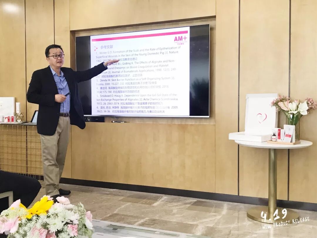 现场陈飞博士介绍了海藻酸钙的设计原理,以及分享了新品理念和成效,使得现场的皮肤医生都叹为观止。好的技术让更多人了解并且体验,这也是这次活动的目标。